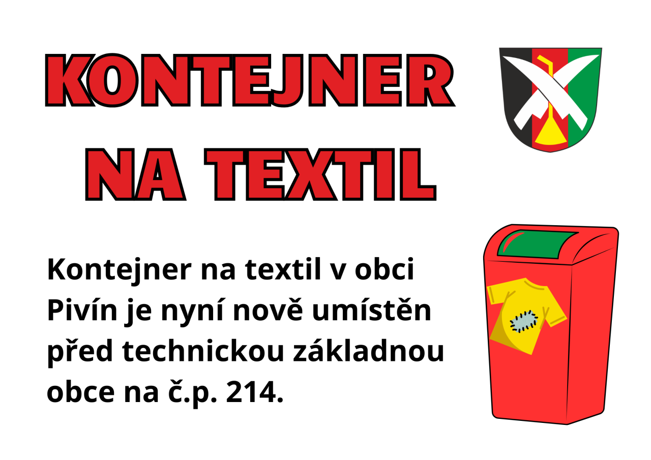 V obci Pivín byl nově umístěn kontejner na textil, který se nachází před technickou základnou na č.p. 214. Tento kontejner je určen pro ekologický sběr textilu a pomůže při ochraně životního prostředí.